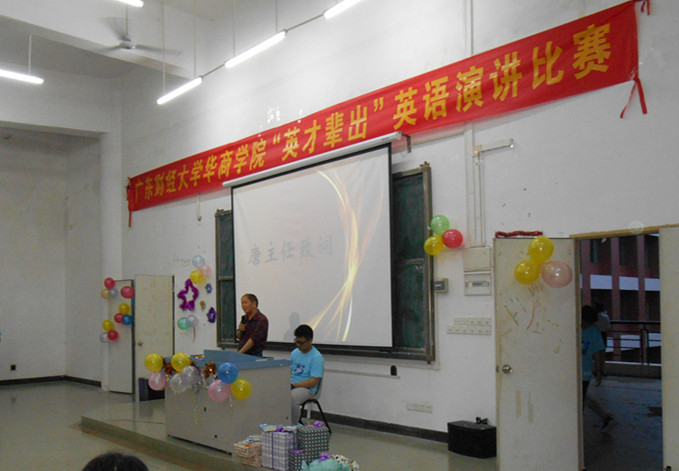 2014年6月6日晚上7时,外语系在励志楼D308举办了第二届华商学院“英才辈出”英语演讲比赛决赛。比赛吸引全院各系学生前来观看,座无虚席。本次决赛的评审有外语系唐正秋主任、外教Tom和Lori以及杨良康老师和刘玉英老师。