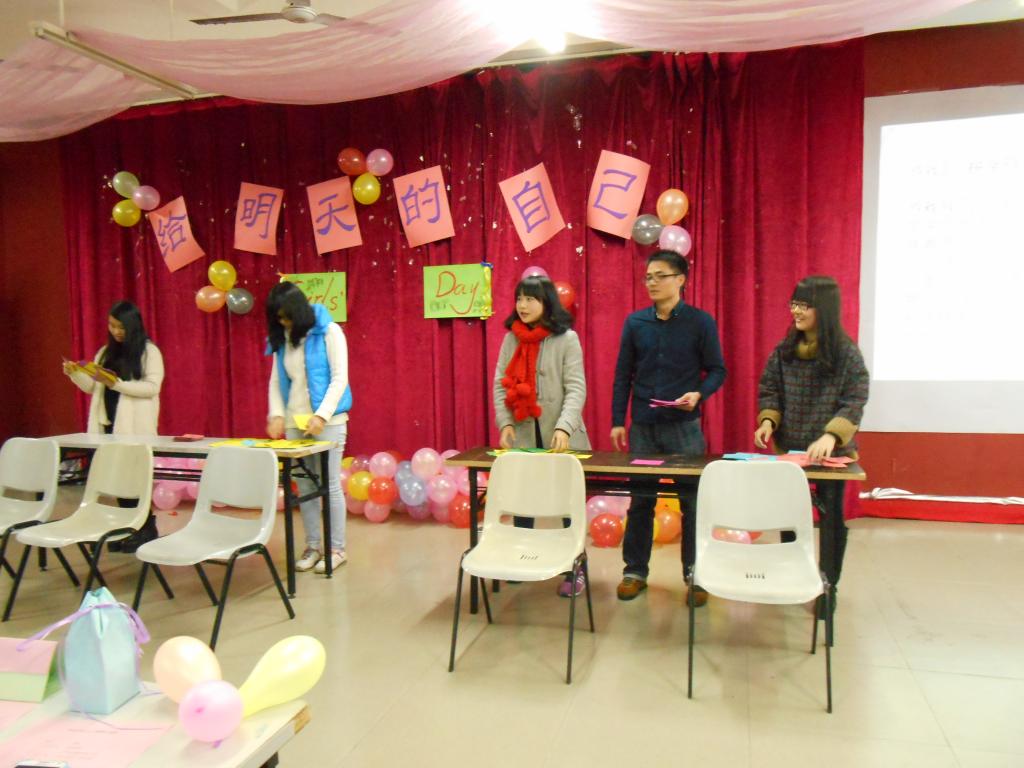 2014年3月9日晚上7点30分,外语系在厚德楼C101举办以“给明天的自己”为主题的女生节晚会,外语系副主任陈老师和团总支书记罗老师出席了本次晚会。