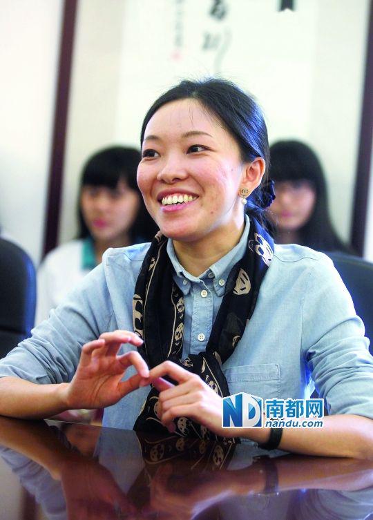 习近平偕夫人出访拉美翻译、广外外校校友姚雯敏昨在母校接受采访。(记者冯宙锋摄)
