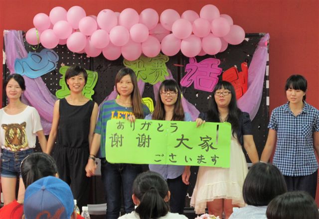 我系共送出两支代表作品,他们分别是2010级日语1班的《转变》和2011级商英5班的《我们的大学生活》。比赛精彩纷呈,话剧发人深省,同学们出色的演技和话剧深刻的内涵,屡次博得了观众、评委的掌声;有的更是发人深省,让我们思考那些我们平日忽视的心理问题。最后我系2010级本科日语1班的《转变》和2011级商英5班的《我们的大学生活》都得到了评委的高度肯定,获得了优秀奖,而日语1班的《转变》在众多院系作品中,以最高票数获得最佳人气奖。特此祝贺!