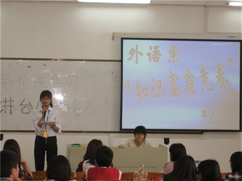 畅游知识海洋,做精神富翁。4月17日,下午14:00,外语系知识富翁竞赛初赛在创新楼E201扬帆起航。