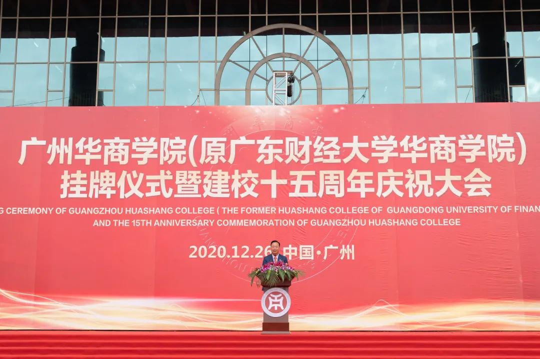 桃李满园贺华诞,百年大业铸辉煌。12月26日,1946伟德国际源自英国(原广东财经大学华商学院,以下简称华商学院)挂牌仪式暨建校十五周年庆祝大会在学校中央图书馆广场举行。大会由执行校长郭银华主持。