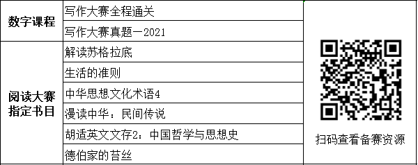 为帮助选手们更好地备赛,大赛组委会在U等生APP“外研社·国才杯”板块推出系列备赛课程,邀请知名写作专家与往届优秀选手指点方法、分享经验;同时,依据大赛考查能力要求,组委会精心甄选备赛推荐书目,敬请关注。