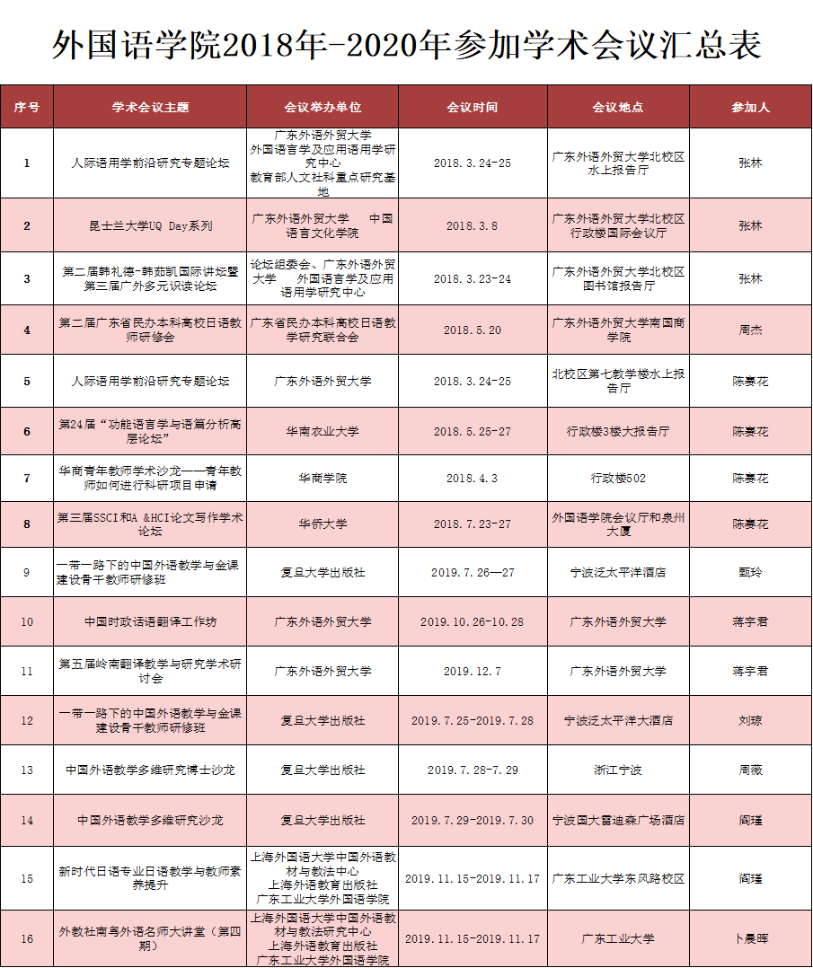伟德国际VICTOR19462018年-2020年参加学术会议汇总表