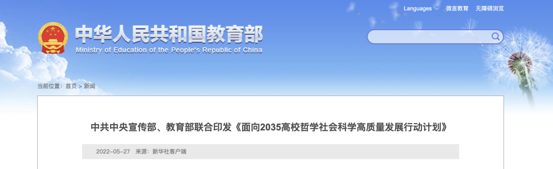 近日,中共中央宣传部、教育部联合印发了《面向2035高校哲学社会科学高质量发展行动计划》(以下简称《行动计划》),围绕贯彻落实习近平总书记关于哲学社会科学工作的重要论述,贯彻落实党中央关于加快构建中国特色哲学社会科学的重大决策部署,充分发挥高校作为我国哲学社会科学“五路大军”中的重要力量作用,不断推进知识创新、理论创新、方法创新,建构中国自主的知识体系,更好回答中国之问、世界之问、人民之问、时代之问,更好彰显中国之路、中国之治、中国之理,对高校哲学社会科学事业高质量发展作出中长期规划。