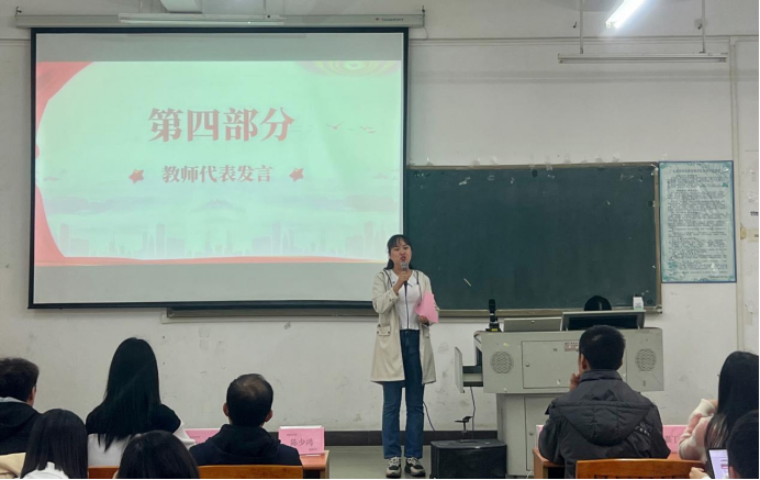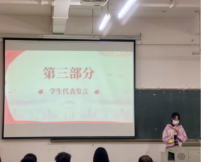 教师代表郭宇洁老师介绍了本次活动的主要内容和活动安排,她呼吁广大同学积极参与本月开展的各项活动,希望学生骨干要时刻发挥先锋模范作用,带动身边同学一起争做文明青年。她强调同学们在日常学习中要注意课堂的纪律、保持课室卫生;生活中要团结同学、保持宿舍卫生,严格遵守校规校纪律。最后,希望同学们在本次活动中有所收获,得到成长。