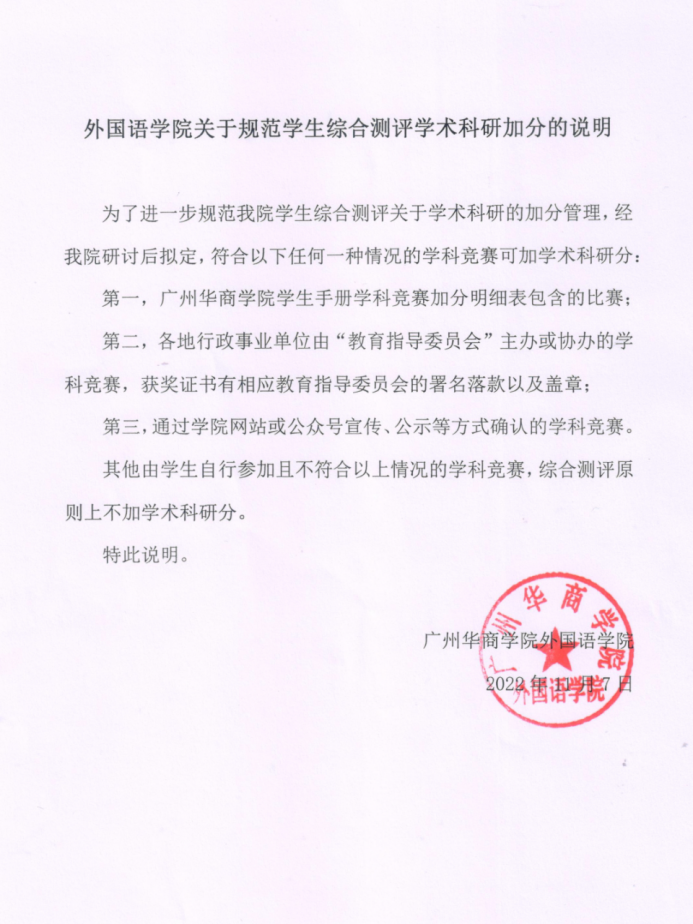 为了进一步规范我院学生综合测评关于学术科研的加分管理,经我院研讨后拟定,符合以下任何一种情况的学科竞赛可加学术科研分: