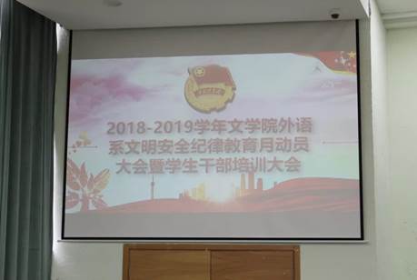 至此,2018-2019学年文学院外语系文明安全纪律月动员大会暨学生干部培训大会圆满结束。