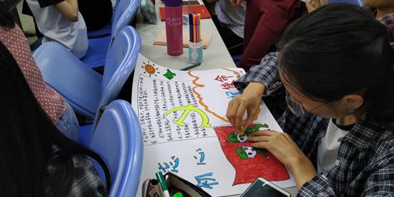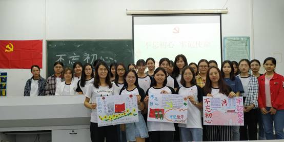 与此同时,在党员同志的互动环节中,各小组以“不忘初心,牢记使命”为主题作画,张艳娥书记要求各小组的画必须体现出自己小组对“不忘初心,牢记使命”的理解。作画结束后,每个小组都与自己小组的画合影,并分享自己小组对“不忘初心,牢记使命”的理解。