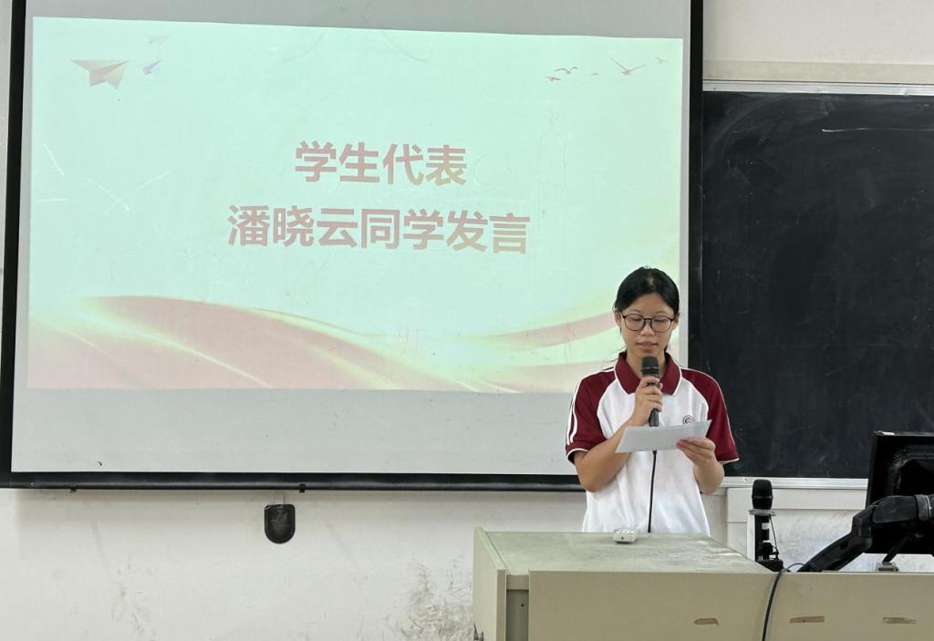 接着,学生代表潘晓云同学在发言中分享了关于安全方面的日常经验,向同学们传达如何确保生命安全、居家安全、留校安全、饮食安全、网络安全等方法。她希望同学们能够培养正确的安全意识,清晰认识到每个人都是自身安全的第一责任人。