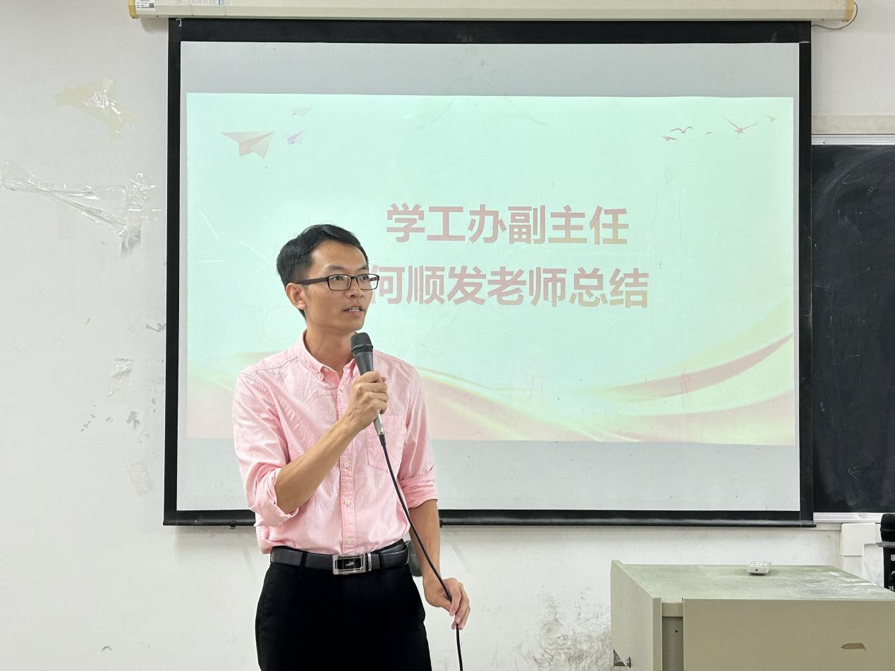 在总结环节,何顺发老师强调,学校和学院都非常重视对学生的安全教育工作,各位同学要把安全放在第一位,保障人身安全,坚持将安全教育落实到每个组织、每个班级、每个同学。同时,他希望同学们能够留“三心”。一是开心,开心度过假期;二是小心,注意防范风险;三是安心,做好充分安排,让老师安心、让父母安心、让自己安心,愿每位师生共同度过安心的时光。