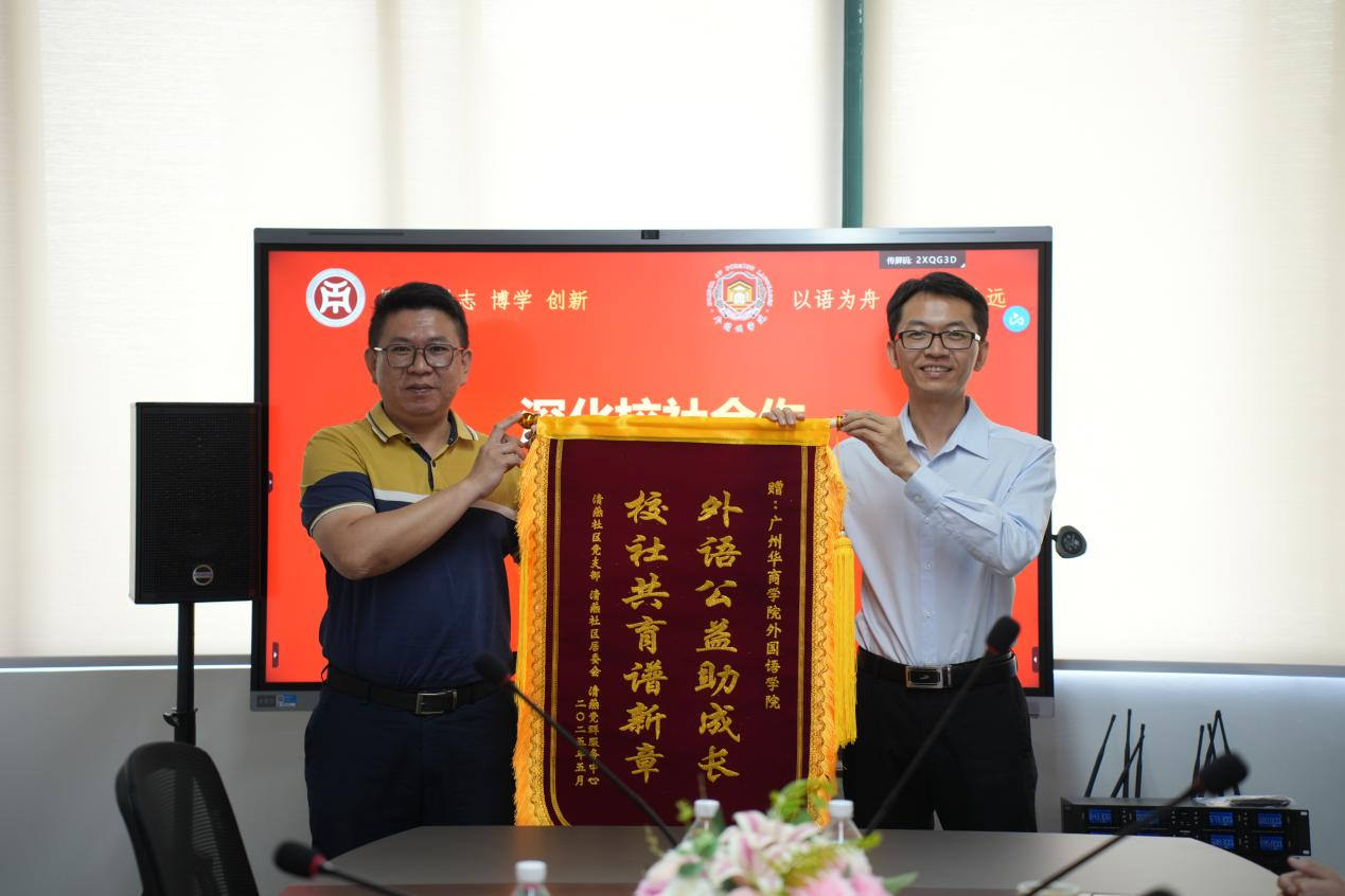 5月13日上午,伟德国际VICTOR1946与增城区清燕社区、锦绣半山御景花园小区物业联合举办的“晚风学堂”英语晚辅公益项目赠锦旗仪式在创新楼403-2小会议室举行。清燕社区邓镜波书记、锦绣半山御景花园小区物业陈勇经理、伟德国际VICTOR1946何顺发副院长及“晚风学堂”项目组全体成员共同见证这一校社协同育人的温暖时刻。“晚风学堂”不仅体现了外院学子践行社会责任的热忱,更是校社双向奔赴、共筑教育公益新模式的生动缩影。