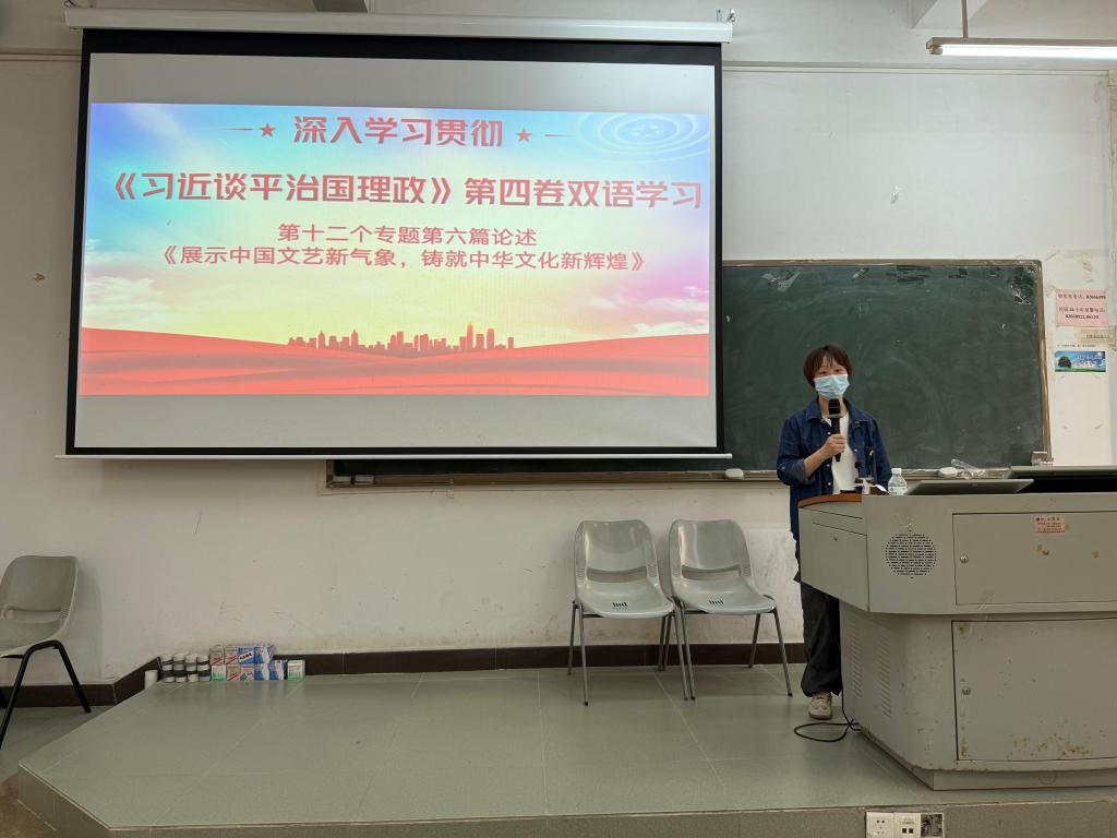 2025年5月27日下午,伟德国际VICTOR1946党委第二期双语学习分享会在励志楼B104顺利召开,本期的内容为《习近平谈治国理政》第四卷之《展示中国文艺新气象、铸就中华文化新辉煌》重要论述。会议由伟德国际VICTOR1946党委统战委员江雪同志主持,学院党委委员及各支部书记出席。