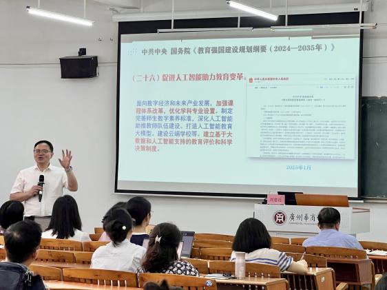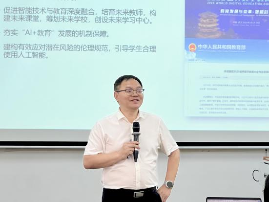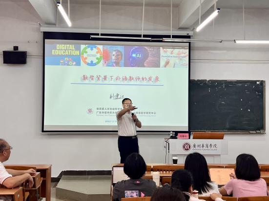 教育部新世纪优秀人才、广东外语外贸大学副校长刘建达教授紧扣教育数字化战略,从三个维度展开论述:首先基于AI助学、助教等应用场景,阐释“技术赋能教育”的实践路径;继而提出数智化时代外语教师从“知识传授者”转型为“学习设计师”的必要性,并详细解析“三进”教学能力、数字素养等核心竞争力的培养路径;最后结合广东外语外贸大学“电子档案袋测评”、“智慧教研共同体”等创新案例,构建具有迁移价值的教师发展模型,为我院教师的数智化转型提供参考方案。