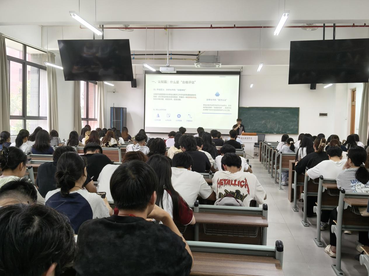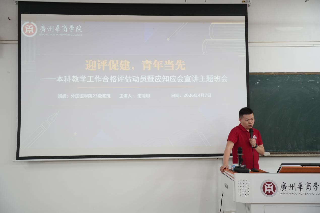 为普及本科教学工作合格评估的有关知识,让全院同学更好地了解学校基本情况、主要成绩和办学特色、迎评准备工作,在学院内营造“人人了解评估、人人参与评估、人人都是评估对象”的浓厚氛围,伟德国际VICTOR1946于2026年4月7-9日分别在广州校区、肇庆校区召开多场以“迎评促建,青年当先”为主题的本科教学工作合格评估动员暨应知应会主题宣讲会。